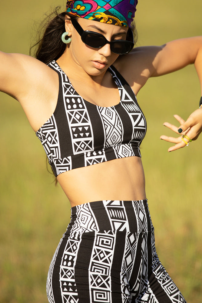 The Yoga outfits are made with 92% recycled polyester and 8% spandex fabric, with a buttery soft brushed texture on both its sides. The fabric feels incredibly luxurious against the skin while remaining both breathable and fast drying. The pattern can vary in position and scale when transformed into a set, making them unique ;)