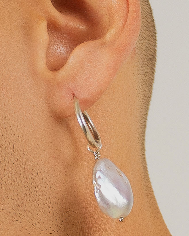 Natural Baroque Pearl hangs nicely from a classic ring earring.