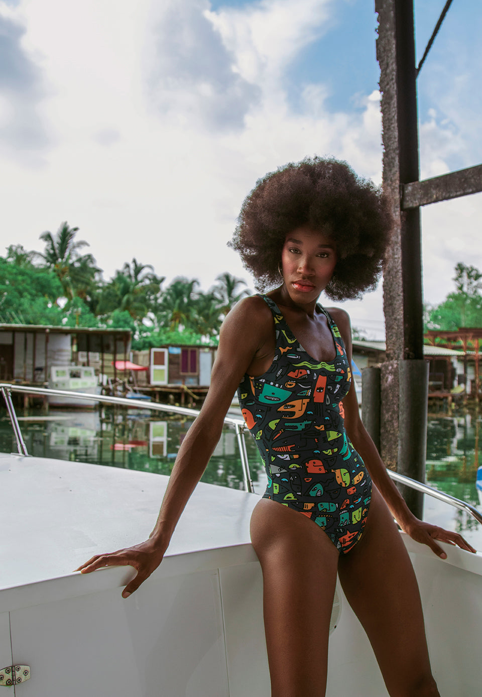 Like fish in water, Fish People was designed as a one-piece Olympic swimsuit with a deep U neckline and a revealing almond-shaped open back. The Fish People swimsuit offers optimum coverage and a streamlined finish.